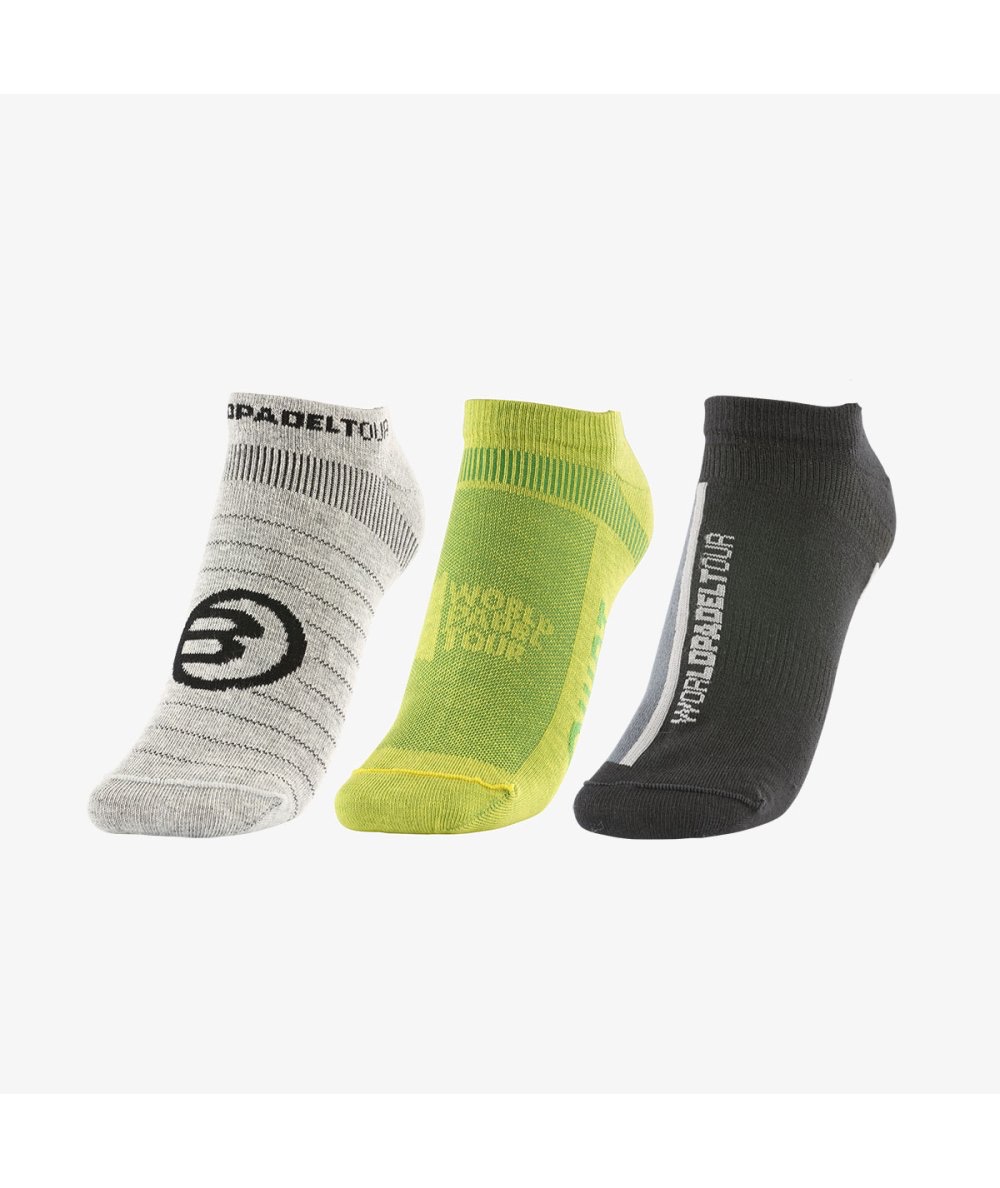 Calzini a taglio basso della nostra speciale linea World Padel Tour, ideali per praticare il paddle tennis. Realizzati con una base in tessuto di cotone, sono molto comodi e non segnano la pelle. Hanno un canale d’aria per regolare la temperatura e una suola imbottita per un maggiore comfort.