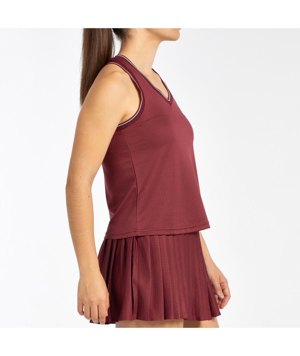 Questo top ti calza come una seconda pelle, supportando ogni tuo movimento con sicurezza e libertà. Un capo progettato per migliorare le tue prestazioni in campo senza rinunciare allo stile. Progettato per supportarti in ogni movimento con il massimo comfort, la sua costruzione tecnica e i dettagli funzionali fanno la differenza partita dopo partita. Un top aderente con spalline larghe della nostra linea Timeless, realizzato con filati Repreve e jersey testurizzato in poliestere riciclato. Scollo e giromanica a coste tricolore, dettagli posteriori in rilievo a caldo e logo ricamato sul davanti.