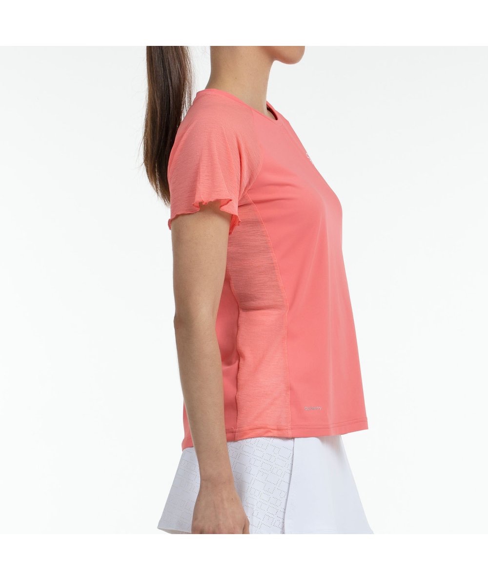 T-shirt a maniche corte con scollo ampio, in tessuto elasticizzato di poliestere e inserti in maglia di poliestere bicolor sulle maniche e sui fianchi.