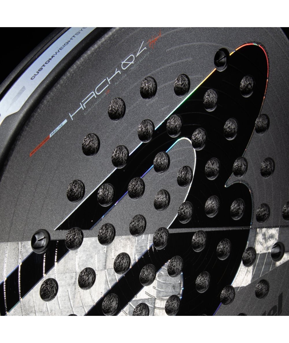 HACK 04 Hybrid , una racchetta progettata con tecnologia Total Channel e triplo ponte al centro. Questo formato ibrido la rende la scelta ideale per i giocatori che cercano di dominare il contrattacco, combinando controllo e potenza. Con l’ HACK 04 Hybrid , scatenerai una tempesta ad ogni mossa, sfruttando appieno la sua reattività.