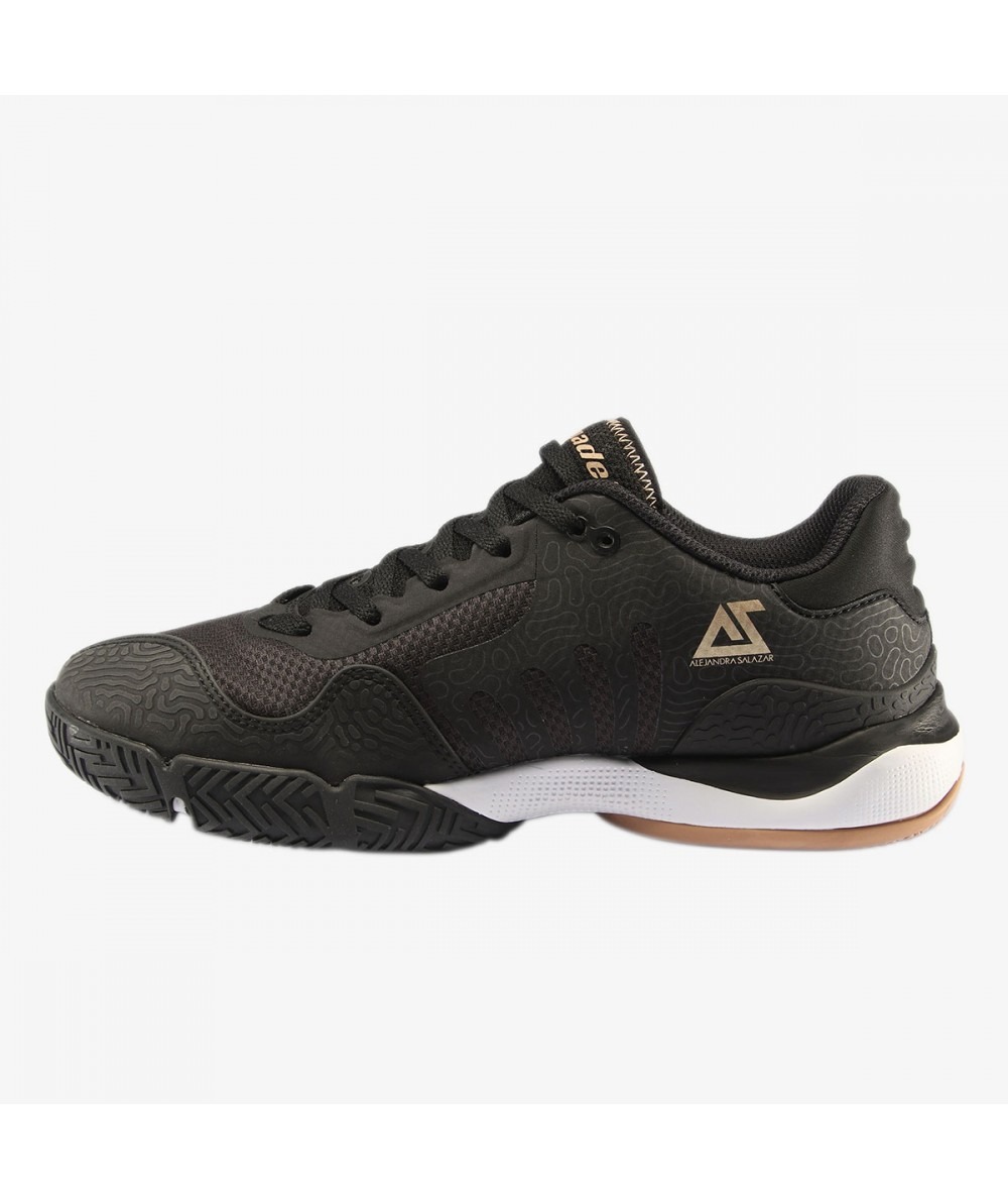 È la scarpa di ALEJANDRA SALAZAR, progettata per giocatori professionisti o avanzati alla ricerca di una scarpa leggera che favorisca la rapidità di reazione, pur garantendo, stabilità e trazione.
